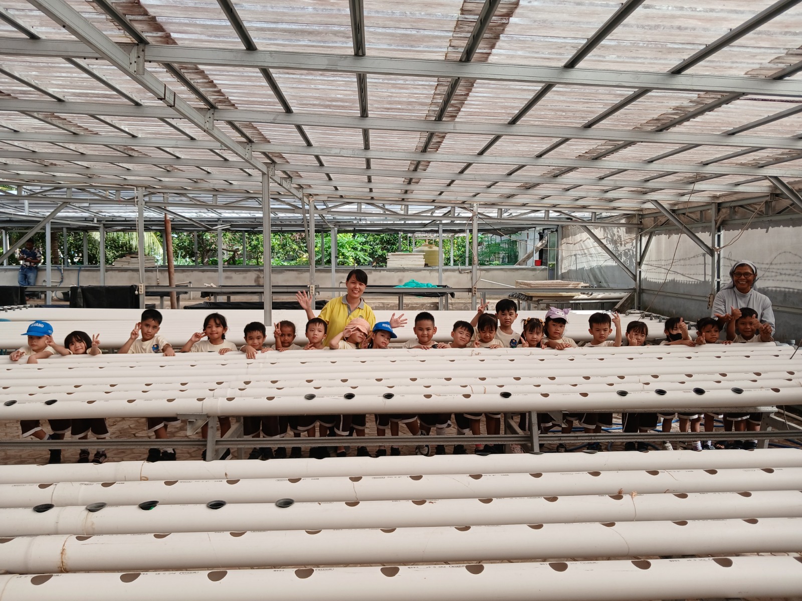 Selain itu, anak-anak juga diperkenalkan dengan tanaman hidroponik. Mereka belajar bahwa tanaman dapat tumbuh tanpa tanah, mengenal proses menanam, serta memahami pentingnya menjaga lingkungan dan ketahanan pangan sejak dini. Pendampingan dari guru dilakukan dengan metode tanya jawab sederhana agar anak-anak dapat aktif dan berani mengungkapkan rasa ingin tahunya.